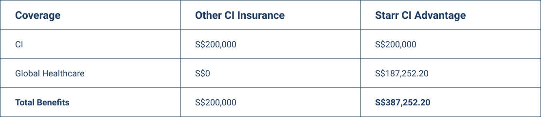 Starr’s CI Advantage gives people more options to treat serious illnesses that require specific treatment. Starr’s CI Advantage provides you with access to medical excellence from world-renowned medical specialists. It also gives you peace of mind by allowing you to prioritise health rather than worrying about finances.